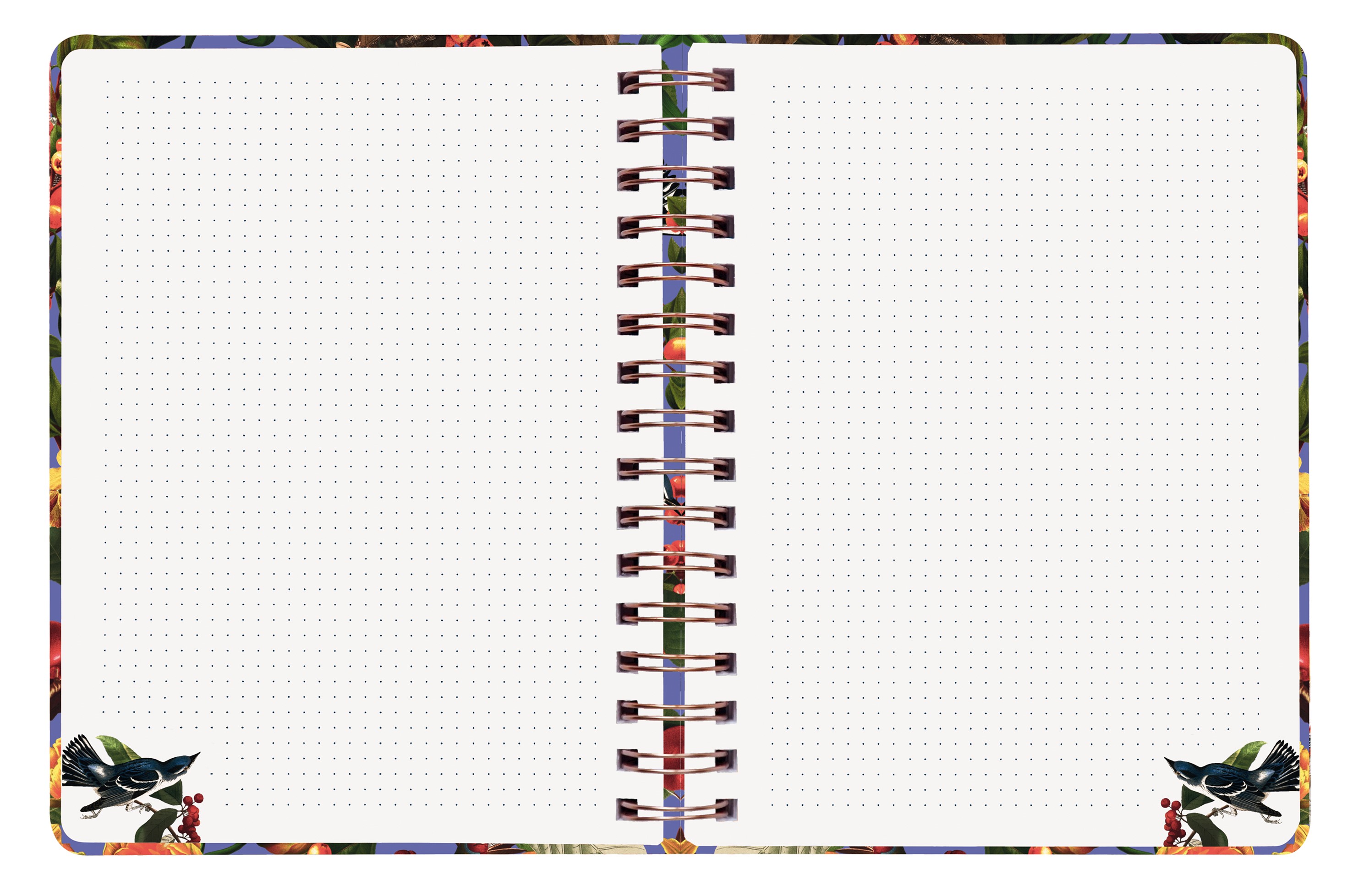 - Seiten beidseitig mit dezent gepunkteten Linien und farbigem Dekor bedruckt