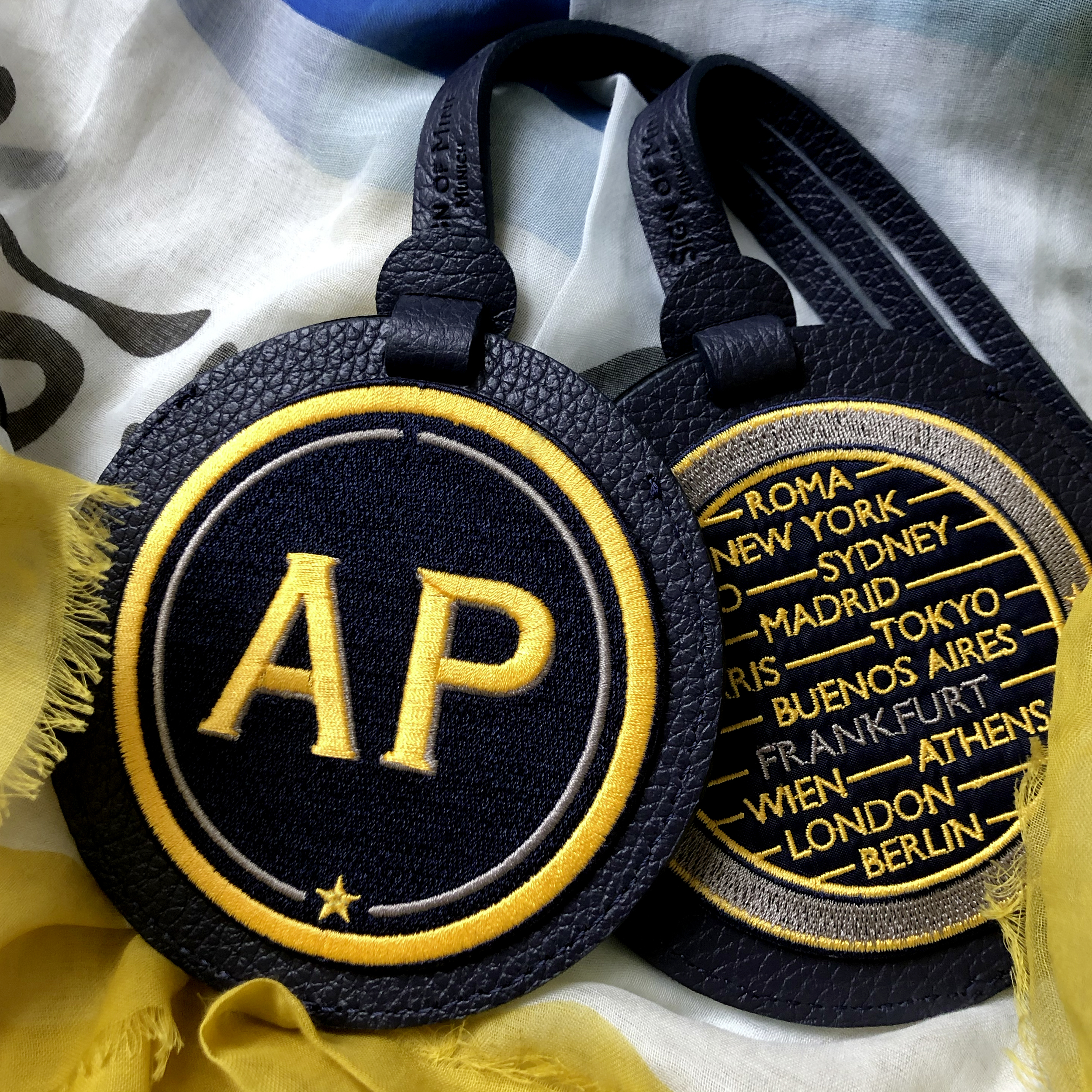 It couldn’t be more personal: with the elegant stylish luggage tag INITIALS made of finest night blue calfskin from Sign of Mine, your suitcase, trolley or travel bag becomes a unique and recognizable piece of luggage. The label is customizable to be embroidered with your initials (up to 4 letters). And to avoid that your piece of luggage will ever get lost: put your business card in the hidden address field or label the inserted card yourself.